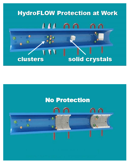 - Cons: HydroFLOW Protection at Work clusters solid crystals No Protection Effectiveness can vary depending on water conditions. It works best on water containing 100 parts per million (PPM) of Hardness or more.
